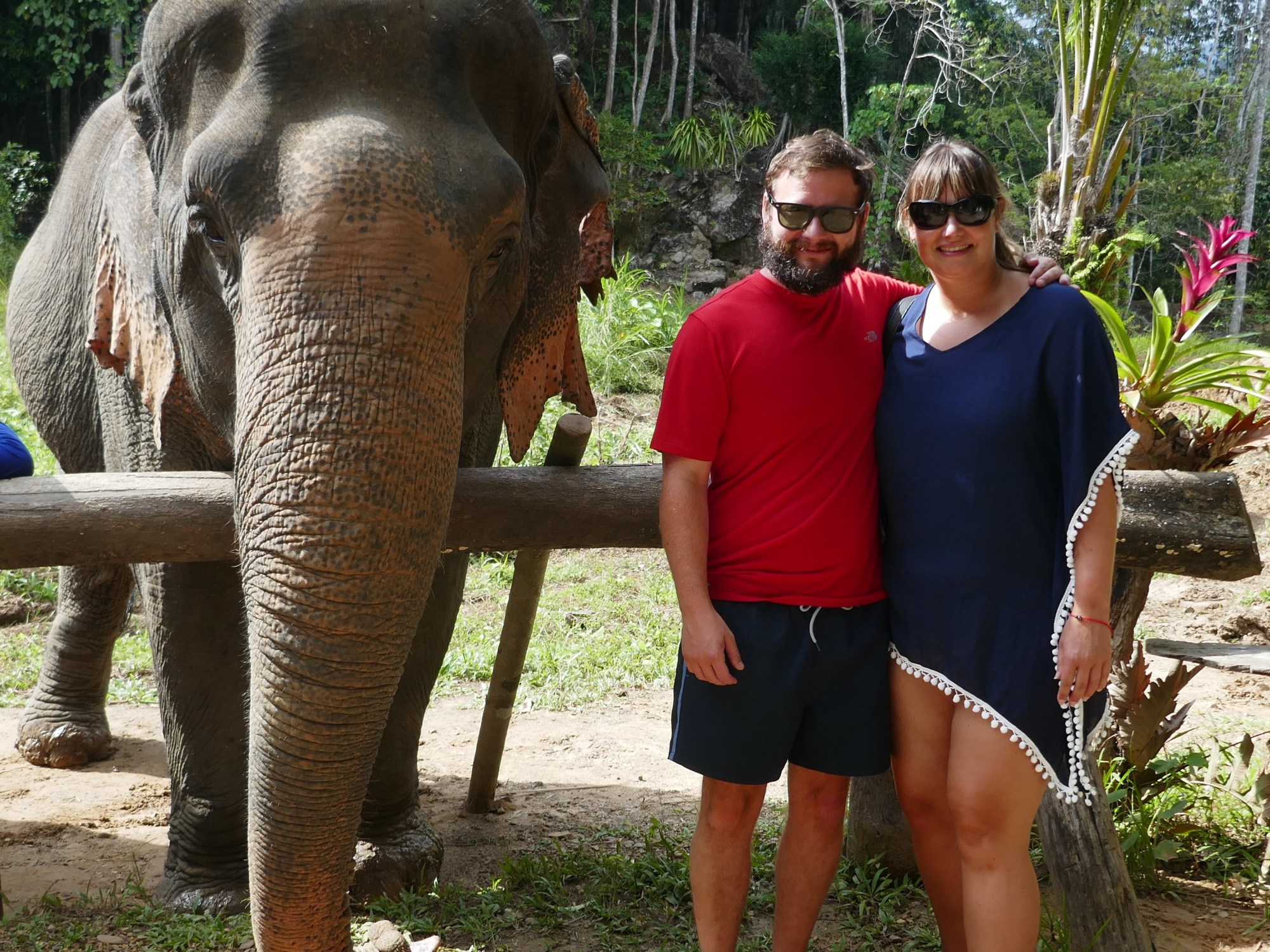 We were up at 6:15am to get ready for our jungle safari. We thought we were going on a walk, however it turned out we just stayed on the boat! We saw different monkeys in the jungle jumping through the trees which was really cool to see. After this we went back to the floating bungalows for breakfast and to check out. From here we went to a dry cave and for a walk around and then got the boat back to the mainland. After a brief stop for lunch we got the shuttle back to our hotel where Matt’s parents were waiting for us for our afternoon activity! They had got a taxi from to come to the elephant sanctuary with us. We checked back into the hotel we were in before the bungalow tour and got changed for the elephant experience. We were going to feed and bathe the elephants. The elephants were rescue elephants and both female aged 41 and 46. After we had fed the elephants and had photos with them we then went into the mud with the elephants and gave them a mud spa! After this we walked to the river to clean the elephants with brushes made from coconuts. The elephants got quite playful and started squirting water at us! It was a great afternoon!